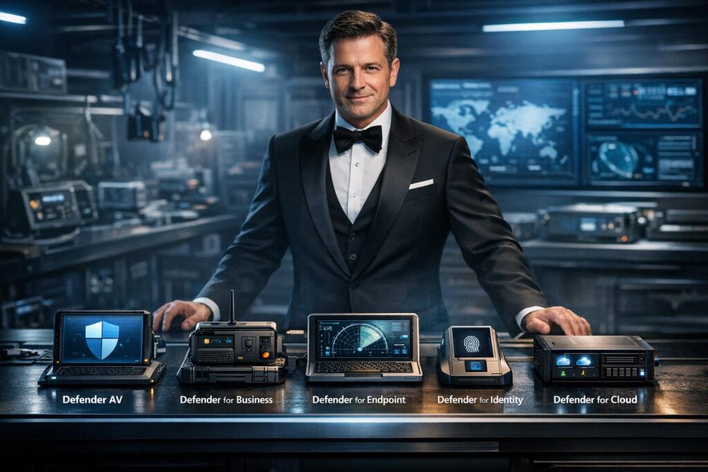 Microsoft hat mit der Defender-Familie über die Jahre ein sehr mächtiges und anerkanntes Sicherheits-Portfolio aufgebaut — quasi den Q-Branch für deine IT. Das Problem: Während Q seine Gadgets immerhin mit klaren Nummern versieht, hat Microsoft bei der Namensgebung… nun ja, sagen wir mal „suboptimal liebevoll“ gewählt. „Defender“ ist eben nicht gleich „Defender“, und die „Suite“ für Business Premium ist auch nicht das, was viele unter „Defender for Business“ verstehen. Höchste Zeit also, hier aufzuräumen — oder, um im Bild zu bleiben: einmal durch Qs Werkstatt zu führen.