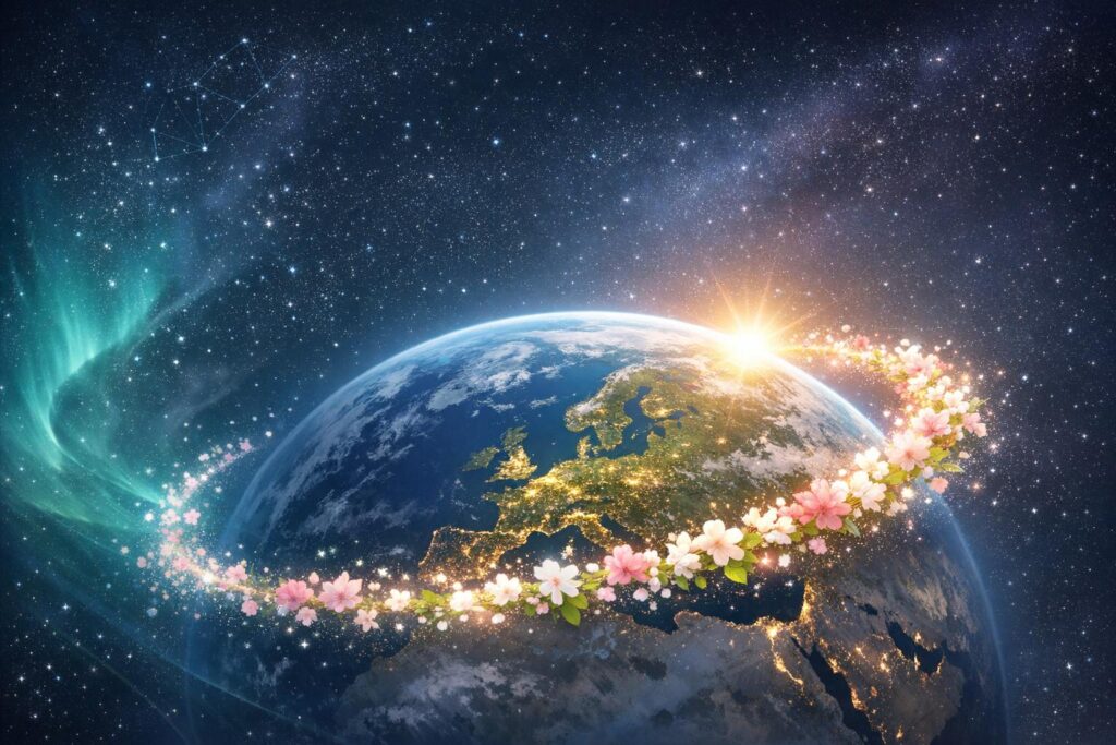 Und Ostern ist natürlich nur am Anfang des Aprils, daher habe ich mir passend zur Arthemis II Mission einen passenden Hintergrund zum Frühling und neuen Möglichkeiten im Frühling erstellt: